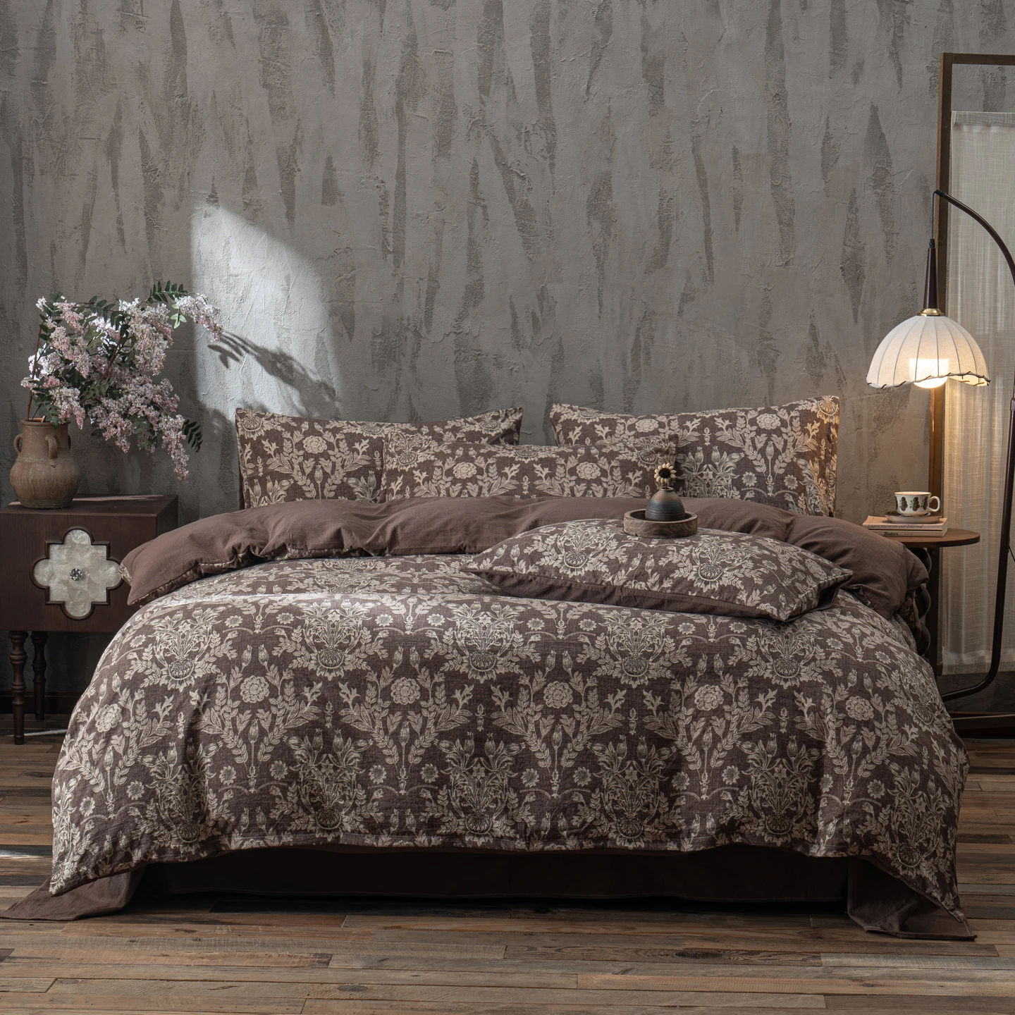 Vintage Style Bedding Set Ins Retro Fresh Floral Washed Cotton Four Piece Duvet Set, Student Dormitory Bed Sheet Three Piece Set