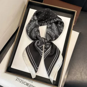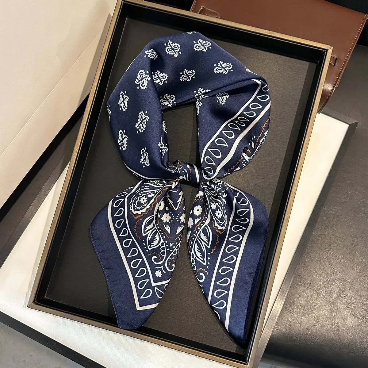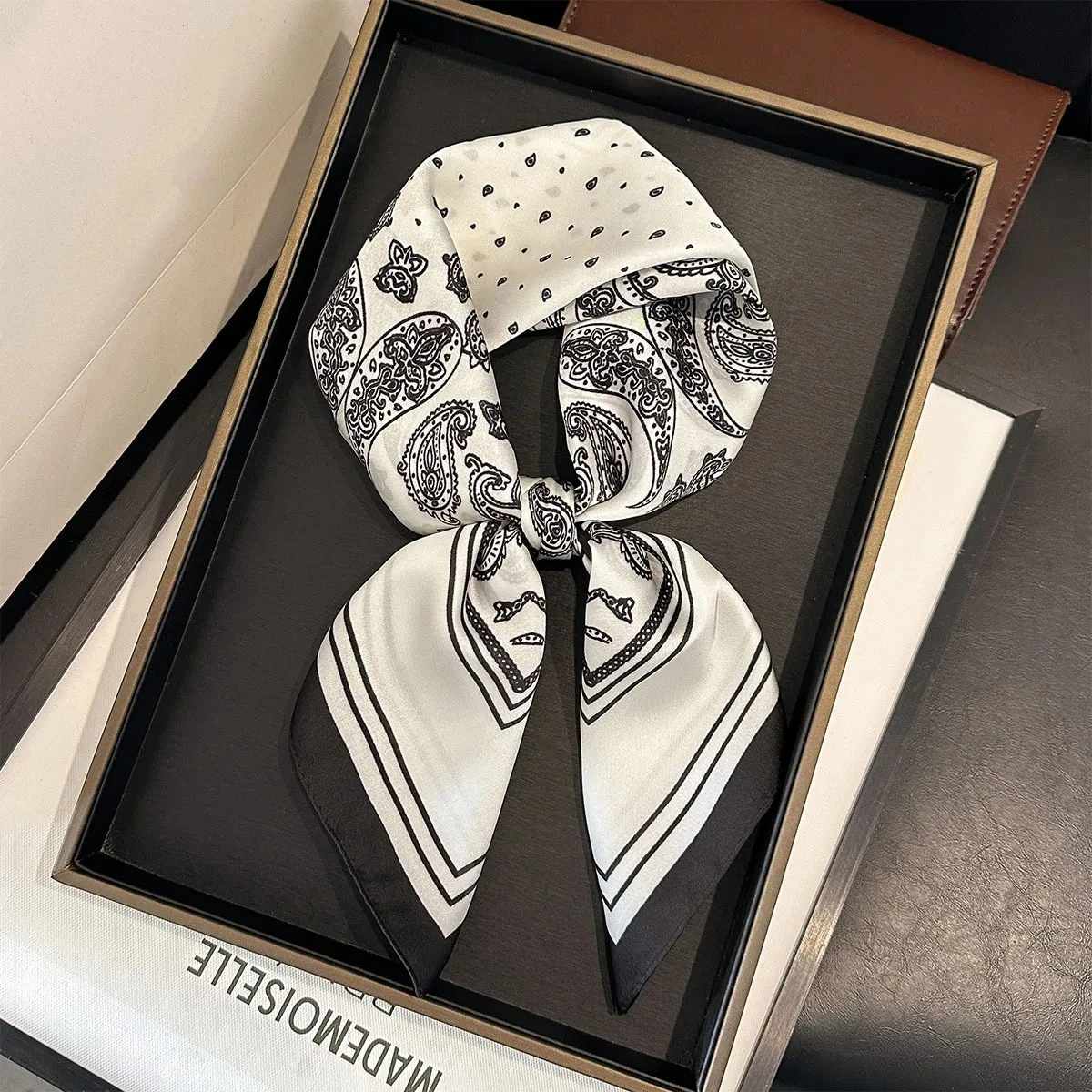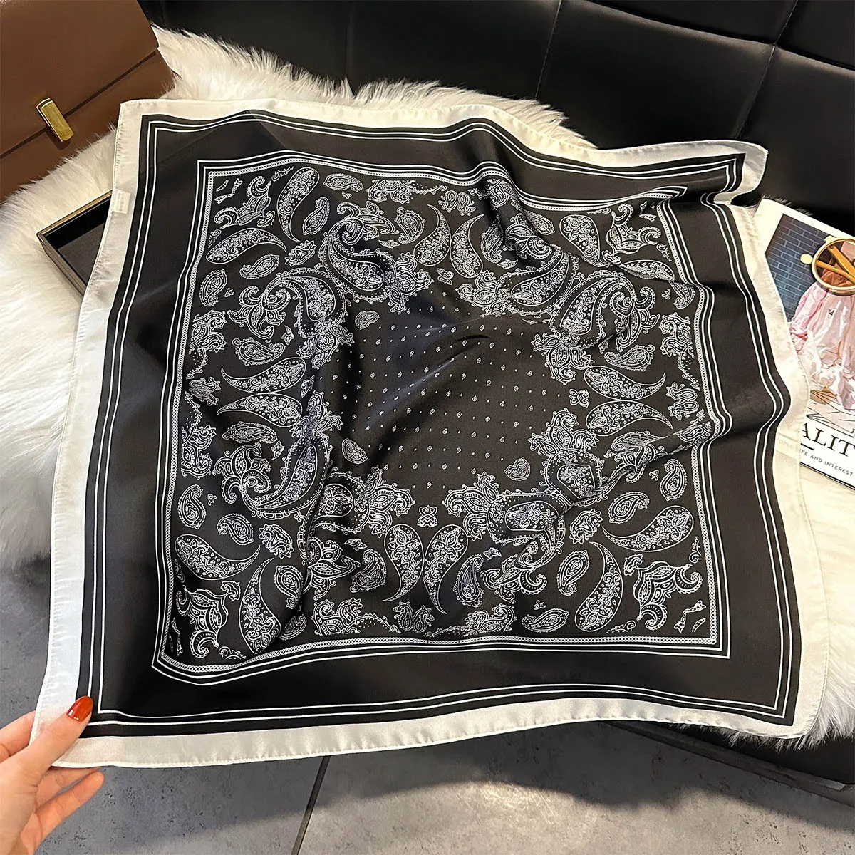 2025 New Paisley Print Silk Scarf for Women Square Hijab Soft Neck Tie Female Fashion Decoration Silk Headscarf 70*70cm Kerchief