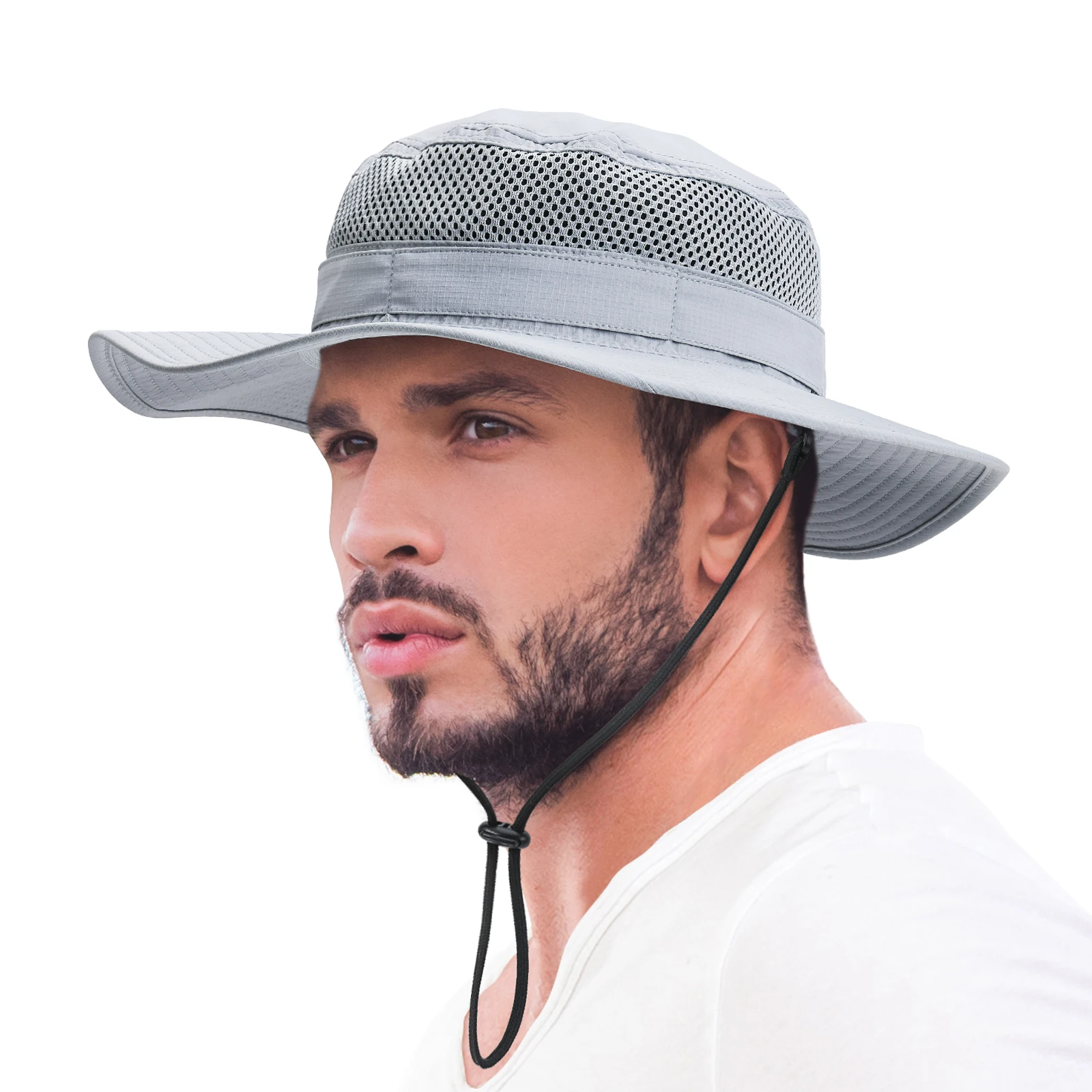 JANGOUL Men Outdoor Mesh Sun Hat Wide Brim Sun Protection Hat Fishing Hiking Hat