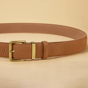 Luxury Suede Cowhide Leather Belt for Women, Vintage Style with Gold Buckle, 3.5cm Wide Waistband for Dresses & Jeans