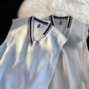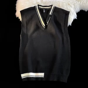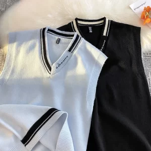 Men High-quality V-neck Sleeveless Knitted Sweater Vest With Color Blocked Ribbed Design Simple Natural Fashionable Casual Vest quantity
