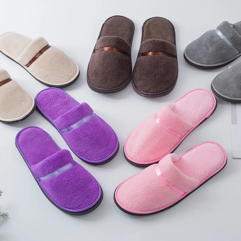 All-inclusive Slippers Coral Fleece Slippers Hotel Slippers Disposable Slippers Solid Color Slippers Soft Non-slip Warm